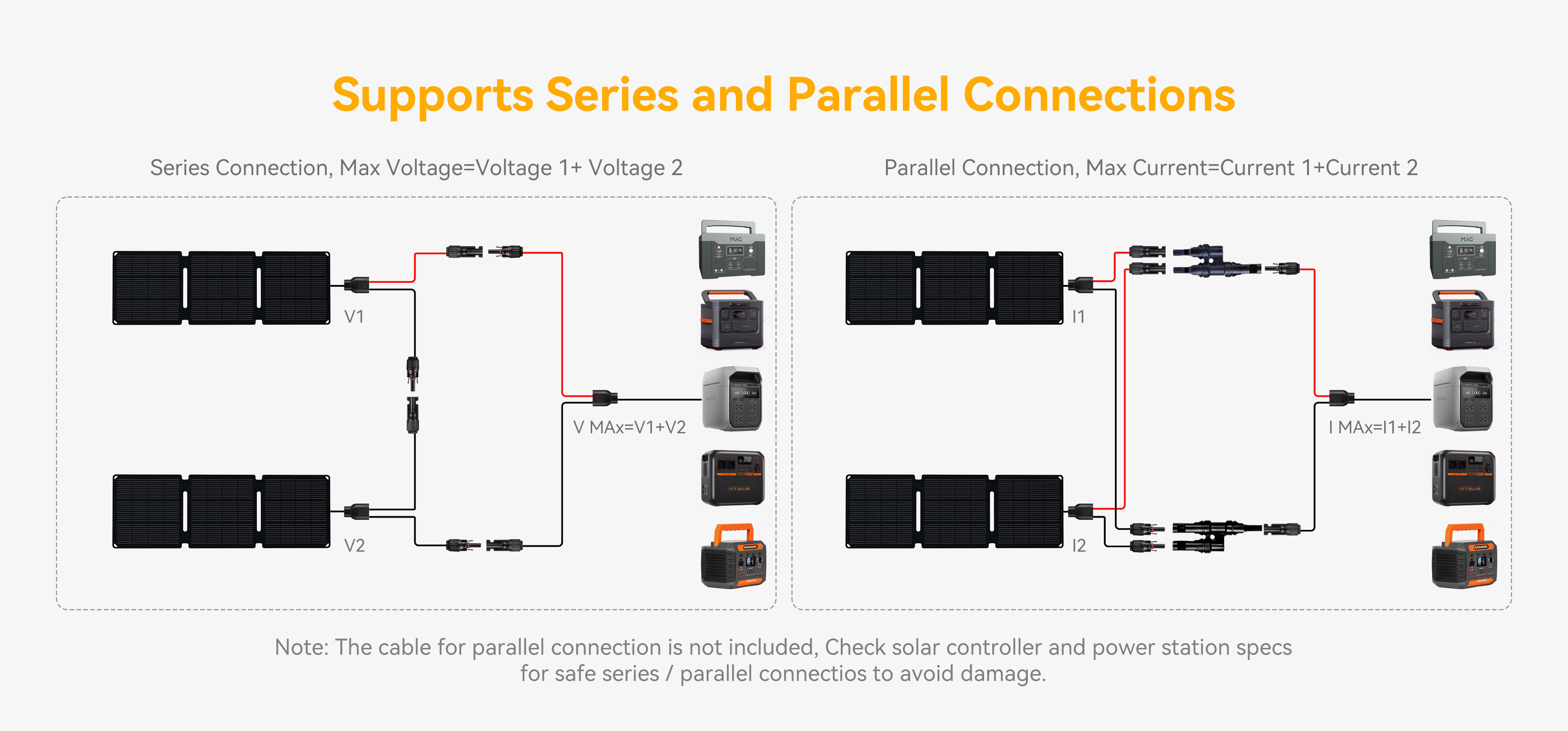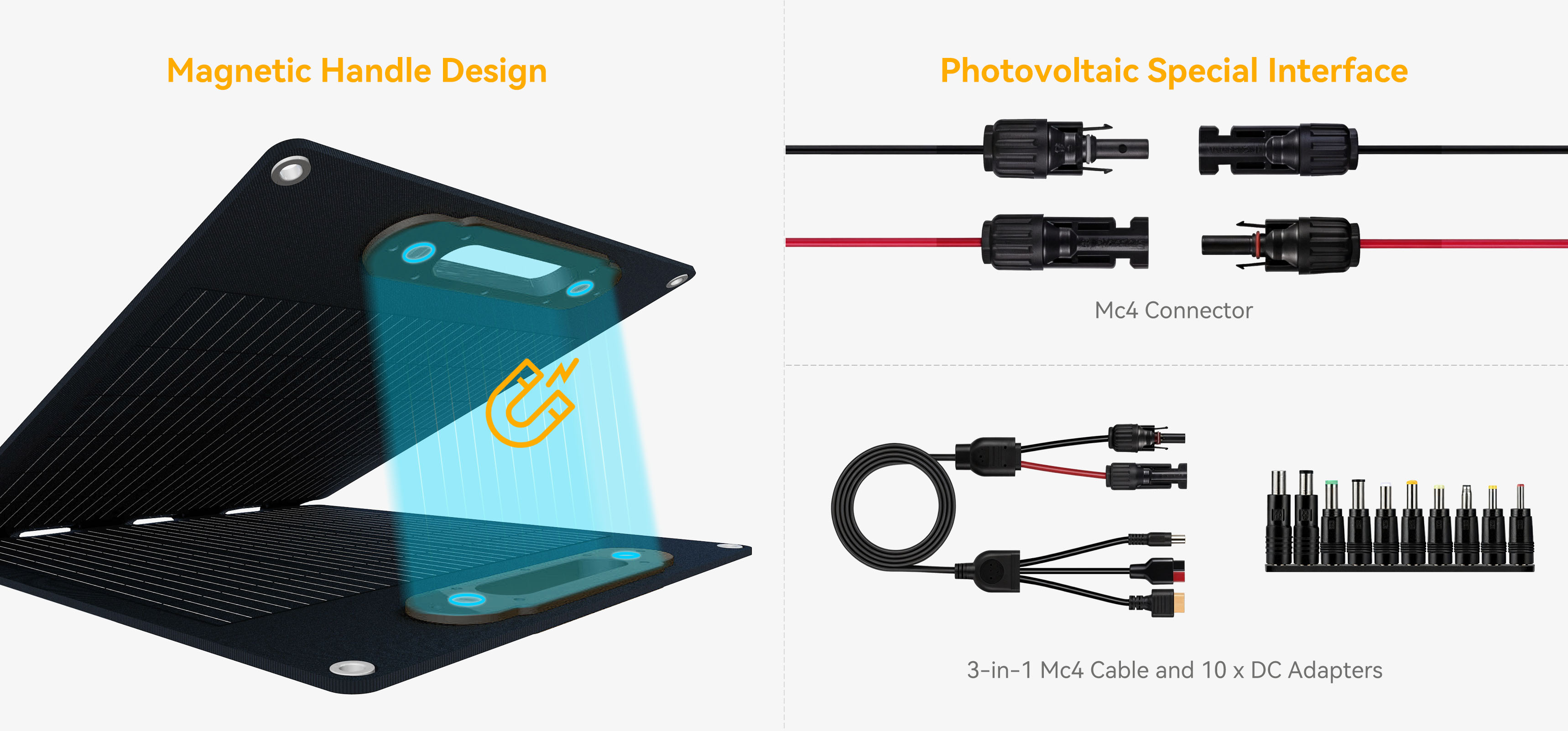 This solar panels comes with a DC5521 output cable and can directly connect to the included 6-in-1 interface cable (Mc4/DC5521/Anderson/XT60). It is compatible with 98% of solar generators/portable power stations on the market (including brands like Mag solar, Jackery, Ecoflow, Bluetti, Paxcess, Suaoki, Flashfish, etc.).